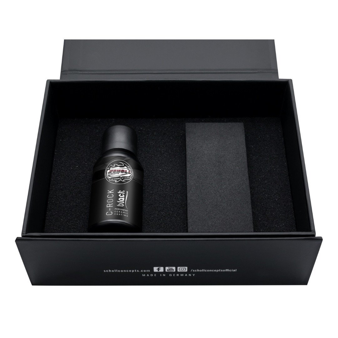 Scholl Concepts C-Rock Black är en premium permanent keramisk coating utvecklad för krävande lacker och bilvårds-entusiaster. Med en hårdhet på upp till 9H och en livslängd upp till ca 75 000 km får du ett skydd som levererar både djup glans, extrem hydrofobicitet.